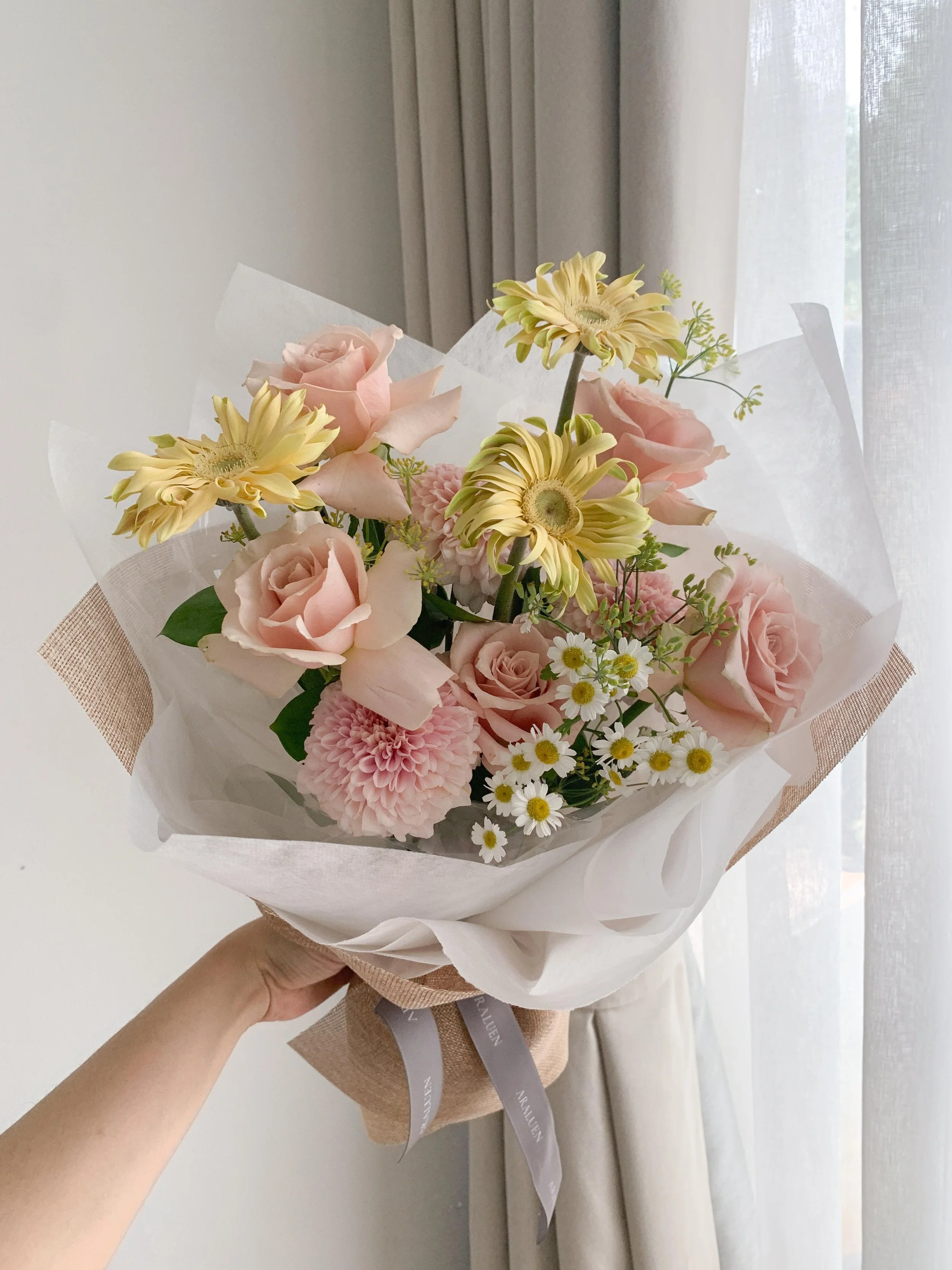 Cotton Puff (M) A bouquet ft Peony mums with delicate textures IDR 500.000