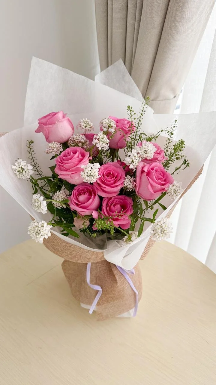 Rose Garden Classic rose bouquet with delicate textures Available in 10/30/50 stems from IDR 400.000