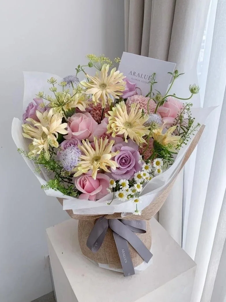 Spring Garden (M) soft pastel bouquet ft. roses, gerbera and chrysanthemum IDR 450.000