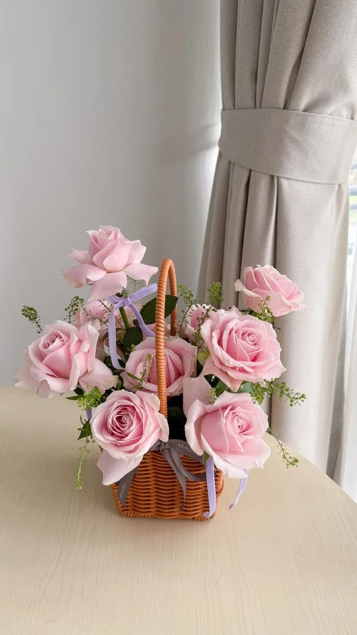 Simple Basket A simple rose basket arrangement IDR 450.000 (M) or IDR 750.000 (L) *two tone available for Large arrangement